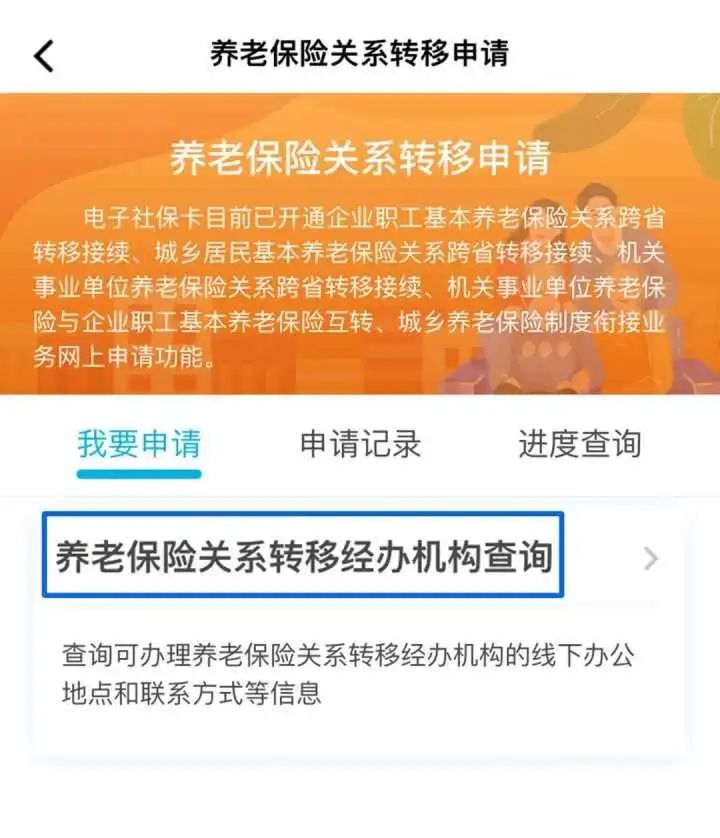 点击【养老保险关系转移经办机构查询】,可查询办理养老保险关系转移经办机构的线下办公地点和联系方式等信息。